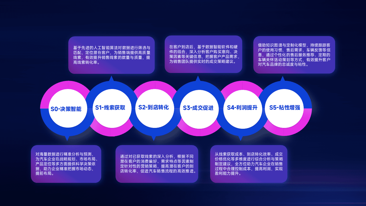 通过拓宽潜在客户来源、、、优化线索分配并提高到店转化率,,,以增强销售效率。。。。同时,,,利用线索数据不断优化分析模型,,,,有效提升转化率,,,扩大营销影响力。。。。